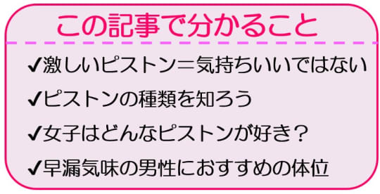 それでは女性の好むピストンとはどんなものか?詳しく見ていきましょう。