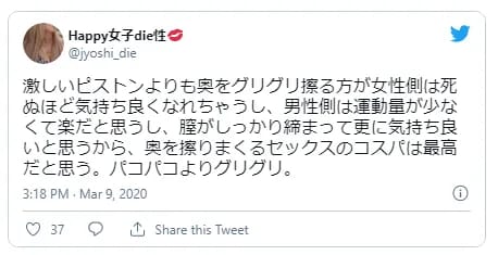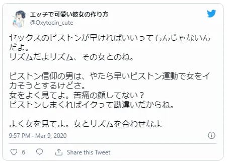 「ピストンしまくればイクって勘違いだからね。」という痛烈なお言葉もありますね。
