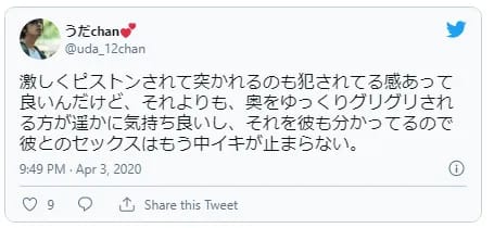 実際に世の中の女子たちは、セックス中のピストンについてどんな意見をもっているのか、Twitterでこのような声がありました!