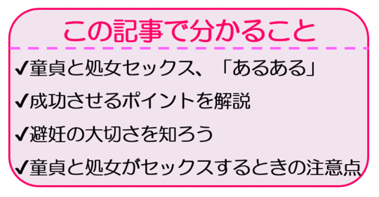 そこで今回は、童貞と処女のカップルがセックスを成功させる方法や、セックスの時の注意点などを紹介していきます。