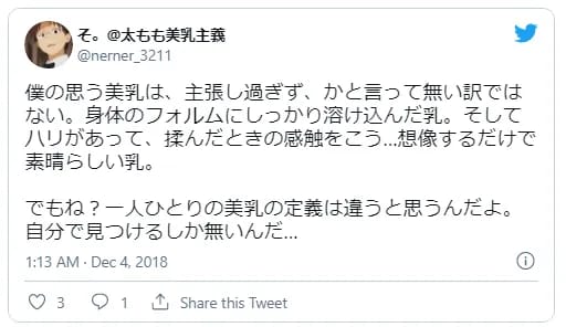 Twitter上で、美乳について盛り上がっている男子の声を調査しました。