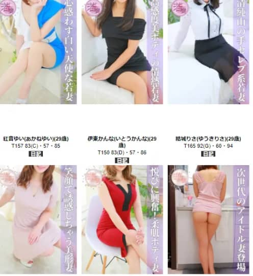小柄で可愛い系の人妻、背の高くスタイルの良い美人系人妻と、幅広いタイプの女性が在籍しています。