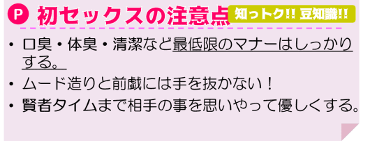 また、コツを意識してセックスできれば回数を重ねるごとに上達するものです。