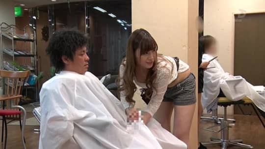 次に紹介するのは「誘惑◆美容室」です。おっぱいが今にも見えそうな衣装で、おっぱいを背中に当てながらカットしてくれる美容師の舞島あかりさんがとても魅力的な作品です!