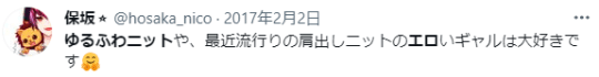 ニットなのに肩の部分が見えてるって、パンツでアソコの部分だけ穴が開いてるのと同じじゃん!