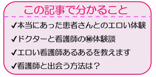 「看護師は、本当にエロいのか?エロい看護師と出会うことが出来るの?」そんな疑問をお持ちの方へ。結論として、看護師は、エロいです!元看護師の私が、エロい実体験を暴露しちゃいます!夜勤中に患者さんと…。実際にあったエロい体験や、看護師友達の秘密も教えちゃいます!