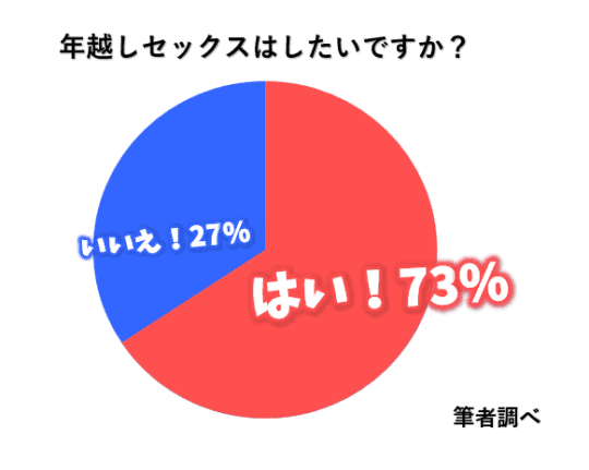 上記の通り、約73%もの男女が「年越しセックスをしたい!」といった結果になりました。