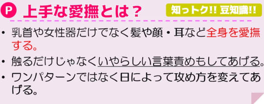 また、自分が何かしてもらっている時には素直に感想を伝えてくれると、女性はもっともっとしてあげたいと思い、どんどん淫らにいやらしくなってきます。