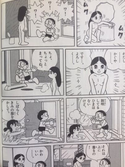 ドラえもんのエロシーンではまさに王道の、しずかちゃんの入浴シーン。