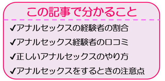 また、アナルセックスを経験したけど、どうも好きになれなかった人も実際多いです。