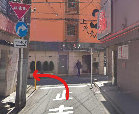本町1丁目交差点まで来たら右側の道路に入って少し歩くと、ソープランドの建物が見えてきます。そこが堀之内のソープ街になります。