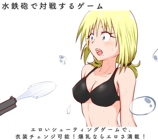 アニメ『閃乱カグラ』のキャラが水着姿で登場し、水鉄砲で対戦するゲームになります。