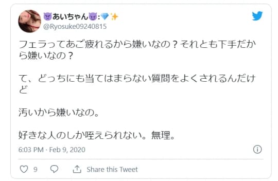 「フェラが気持ちいい」って言うなら、それに越したことないけどね。