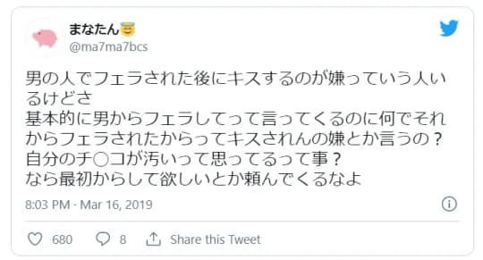 「フェラ後キスできることが相性を見るうえで一番大事」「嫌がる男性は性欲だけでセックスしている」とのご意見。