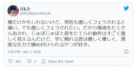 Twitterの本音を多く調べていて、「最初は嫌いだったけど、男性が褒めてくれたり感じている顔をみて好きになってきた」という意見が多かったです。