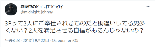 3pしてたら男がすぐにイッちゃって、こっちは欲求不満のまま終わった。