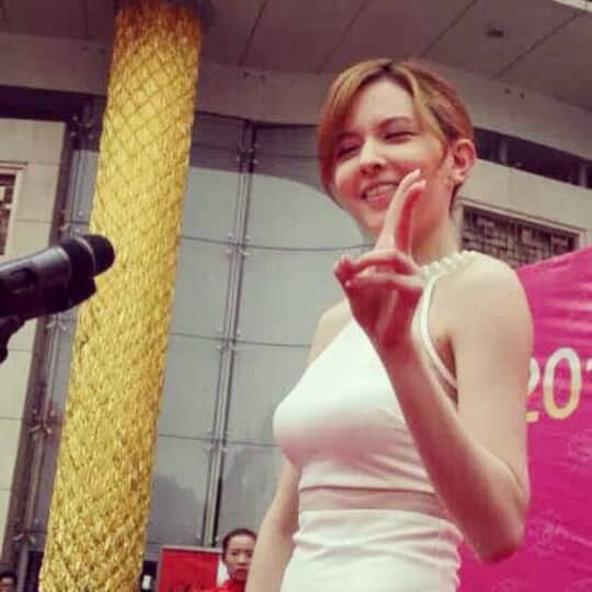 日本では知名度はそれほど高くないものの、中国ではかなりの人気者で、テレビやイメージガールとして引っ張りだこです。