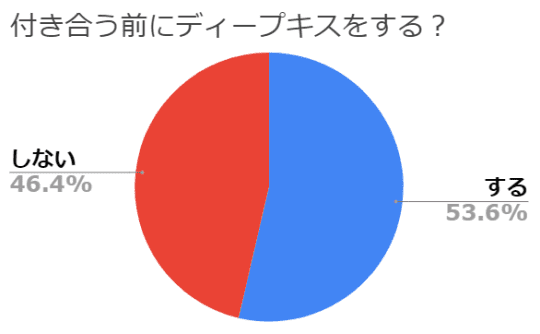 アンケート結果は、半数以上が「付き合う前にディープキスをする」と回答しています。