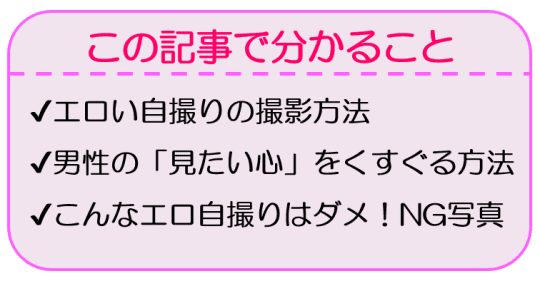 男性にエロいと感じさせるためには、綺麗だけじゃだめ!演出次第でエロい自撮りのレベルアップさせることができちゃうこと知っていますか?!あざとさがばれずに、他とは差のつくエロい自撮りを撮る方法を元ナイトワーカーの私が伝授しちゃいます☆