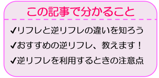 リフレと逆リフレでは興奮度や女の子との密着度も変わるため、逆リフレのサービスがあるにも関わらず、気づかずに利用しないことは非常にもったいないです。