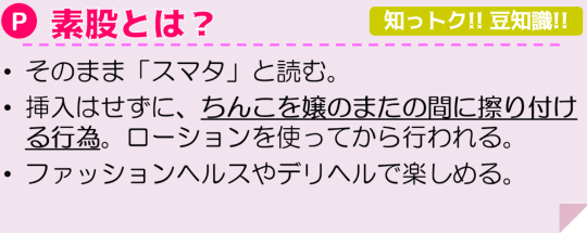 基本的なサービス内容は、キス、全身リップ、フェラ、手こき、素股になります。