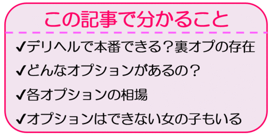 デリヘルで本番行為は出来る?裏オプションとかあるの?