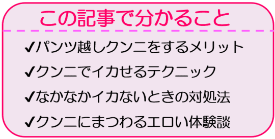 今回は、パンツ越しクンニのメリットやクンニでイカせる方法を解説し、パンツ越しクンニをした体験談を紹介しました。