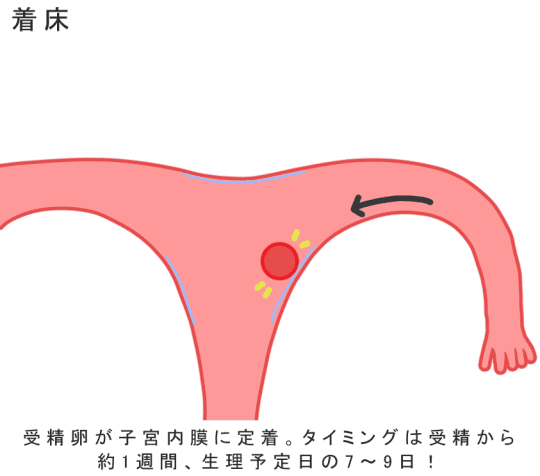 着床とは、1週間ほどかけて卵管を通ってきた受精卵が子宮へたどり着き、子宮内膜へもぐりこんだことを指します。
