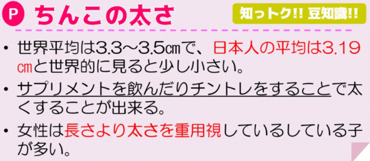 結局、大きいか小さいかを決めるのは女性側なので、日本人ならばおおよそ平均くらいあれば長さ的にも大きさ的にも良しということです。