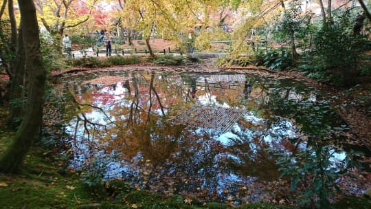 澄んだ池に映し出された、もう一つの紅葉を楽しむことが出来ます。