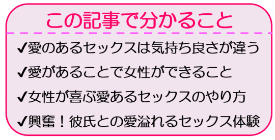 愛あるセックスというのは女性にとって、男性からたっぷり愛を感じられるセックスであるということです。