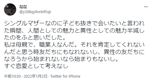 シングルマザーの人は、セックスして2人の関係が終わったあとのことをよく考えて行動してます。