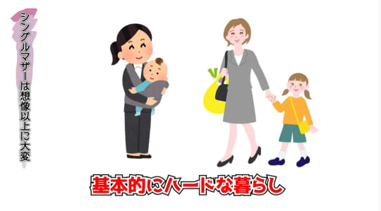 離婚を決める時も、離婚をした後も精神的にズタズタな状況になっているのに働かないとダメだし、子供との生活の維持にも不安を抱えているのがシングルマザーの現状。