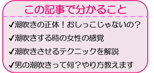 この記事を読んでもらえれば、潮吹きの正体ややり方、コツなど全てをわかっていただけると思います!