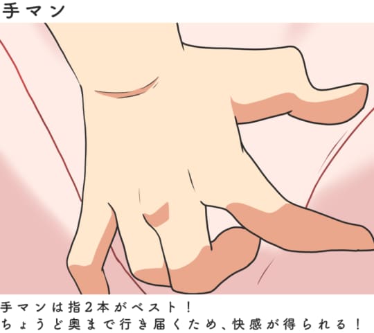 ほじくるようにグリグリするのではなく、中指と薬指をを膣内に挿入し、Gスポットに指の腹を向けて密着したまま、肘から下を固定して、手首と指で圧迫するといった感覚です。